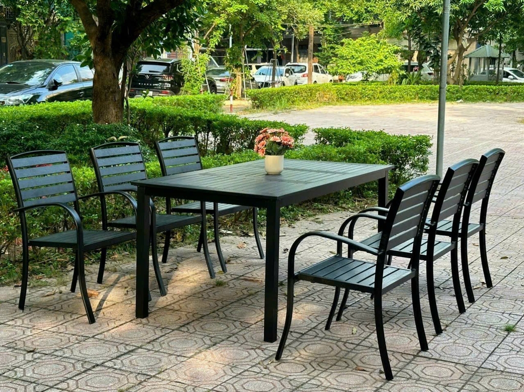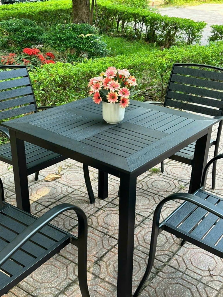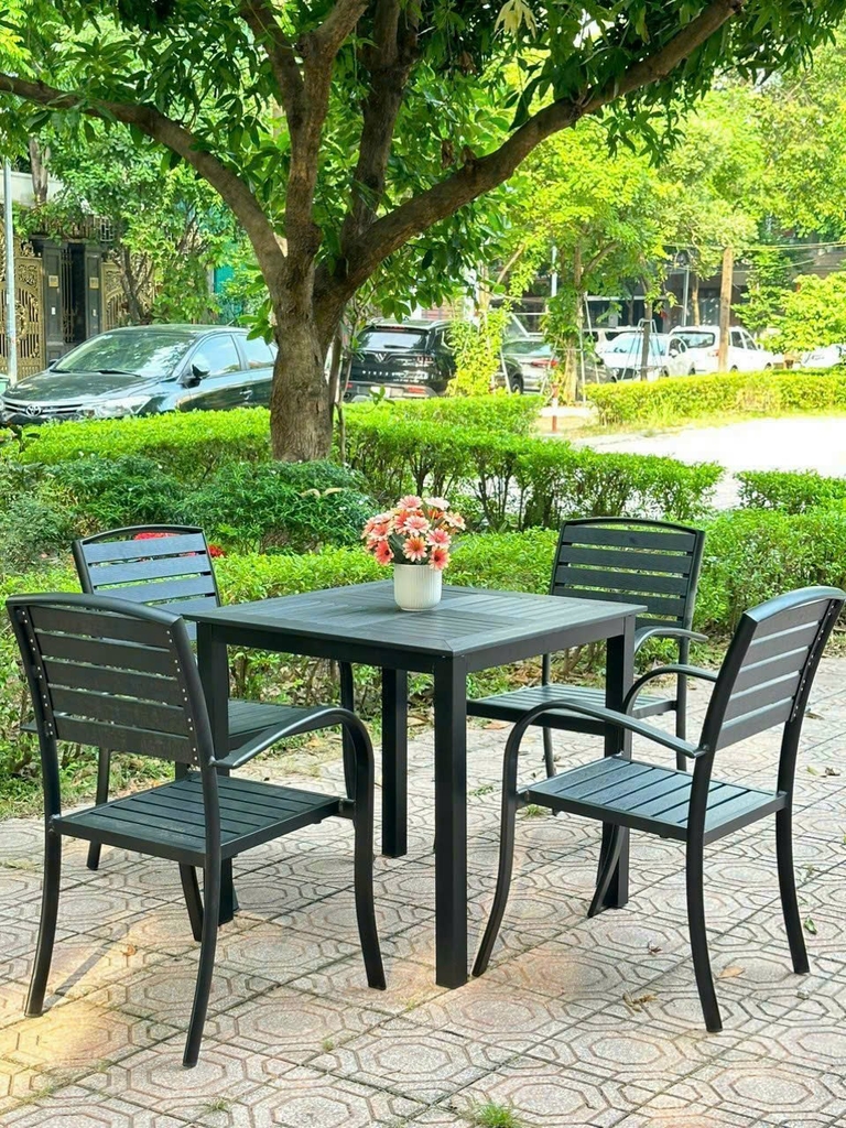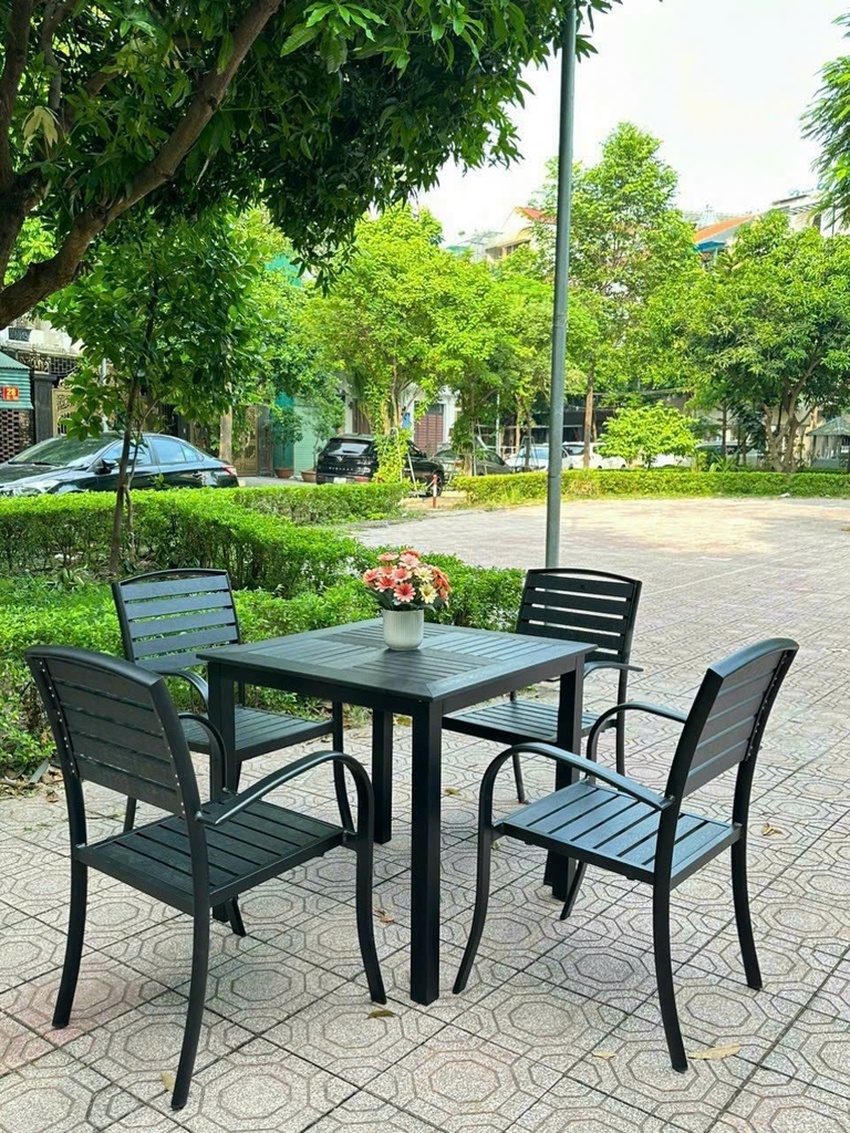– Bàn,ghế: Chân nhôm sơn tĩnh điện,mặt gỗ nhựa
