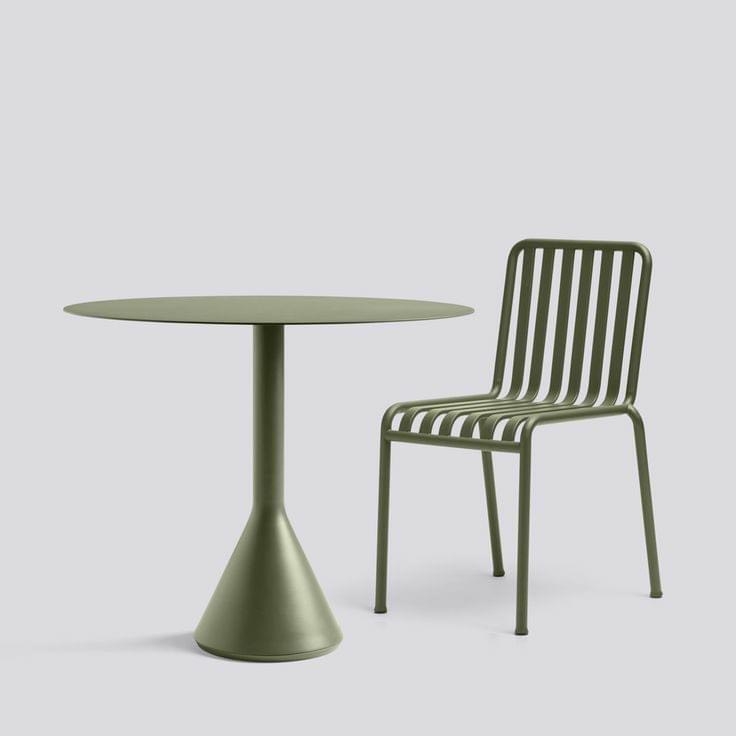 Chất liệu sắt được uốn cong nghệ thuật làm đường cong uốn lượn mềm mại. Mặt bàn và hay nan ghế đều làm bằng thép hộp uốn tạo đường cong tạo dáng.