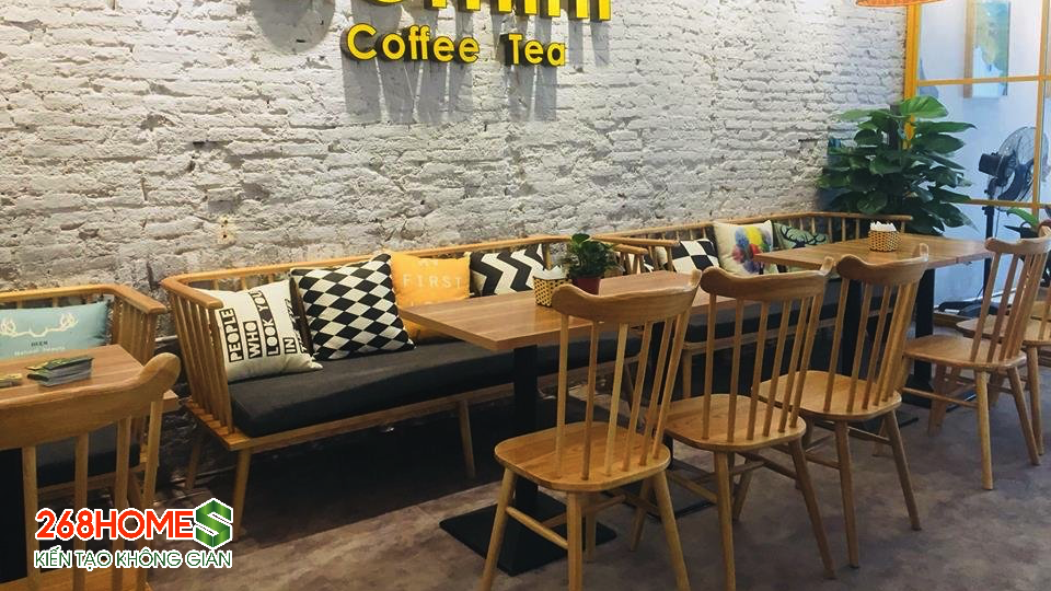 Màu sắc: Chọn màu sắc phù hợp với không gian của quán cafe và tạo cảm giác ấm áp. Bạn có thể chọn các màu sắc như nâu, trắng, xám hoặc màu gỗ tự nhiên.